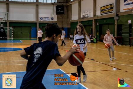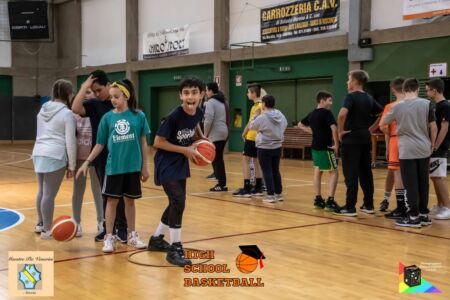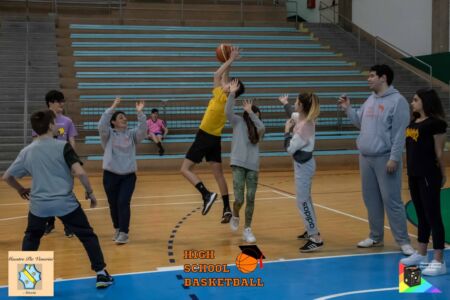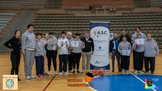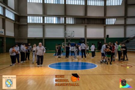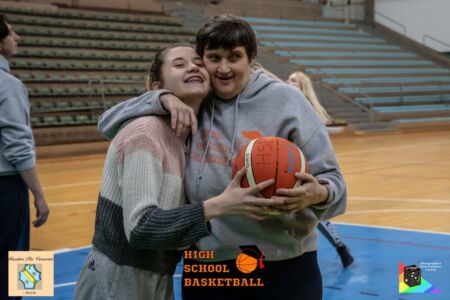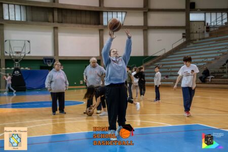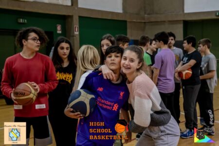 A seguito di una serie di incontri di basket integrato che ormai sono diventati una tradizione tra il Gruppo Overlimits dell’High School Basketball e le classi medie dell’Istituto Pie Venerini di Ancona, giovedì 9 Maggio al Palasport di Via Veneto c’è stata la festa finale. Hanno partecipato i ragazzi e gli istruttori dell’HSB e le insegnanti e i ragazzi delle classi prima, seconda e terza media dell’Istituto. L’evento si è svolto col patrocinio del Comune di Ancona e con quello dell‘ASC (Attività Sportive Confederate). E’ stata una festa molto divertente e coinvolgente con tutti i ragazzi (della scuola e gli Overlimits) che si sono impegnati al massimo condividendo gli esercizi svolti e aiutando quelli più in difficoltà. A riprova di ciò c’è il fatto che un’alunna della terza media vuole venire ad aiutarci negli allenamenti del nostro gruppo. Sicuramente queste esperienze sono fondamentali per la crescita dei nostri ragazzi che vengono coinvolti in un contesto diverso dal normale allenamento nel quale si confrontano solo con gli istruttori. Hanno concluso la mattinata i discorsi delle autorità presenti, compreso quello del nostro Vice Presidente Fernando Frezzotti, lo scambio dei doni e la foto finale tutti assieme. Un ringraziamento speciale a Stefano Carloni per le tantissime e splendide foto che ha fatto che colgono l’espressività di ciascun soggetto coinvolto. Grazie anche ad Andrea Tiberi, istruttore Overlimits, all’Istituto Pie Venerini (alunni, insegnanti, Anna Laura Broglio in testa, a Suor Maria, assente a questa manifestazione e alla Preside Ilona Boccoli. Grazie infine al Comune di Ancona per il patrocinio e all’ASC per il patrocinio corredato di striscione e vela e per la presenza del Presidente del Comitato Regionale Giampietro Cappella e del Presidente Provinciale di Ancona Alberto Pacella. Grazie per la graditissima presenza dell’ispiratore e sostenitore della nostra associazione Claudio Sordoni, figura storica del basket anconetano e del nostro Vice Presidente Fernando Frezzotti. Con le Pie Venerini ci rivedremo il prossimo anno scolastico.
